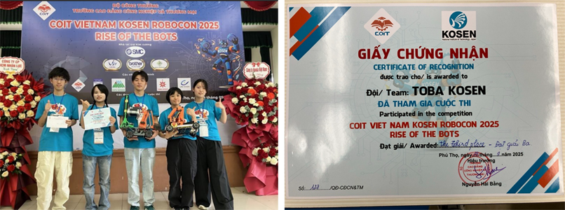 鳥羽商船高等専門学校情報機械システム工学科の学生5名が、令和7年9月19日、ベトナム ハノイにある商工短期大学(College of Industry and Trade、以下「COIT」)で開催された「COIT VIETNAM KOSEN ROBOCON 2025」(以下「ベトナムロボコン」)に出場しました。